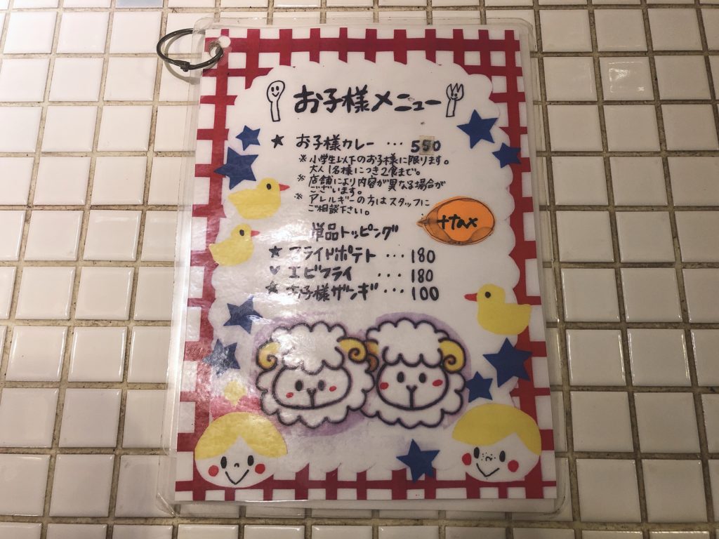 スープカレーサムライには、キッズメニュー(¥825)も用意されています。