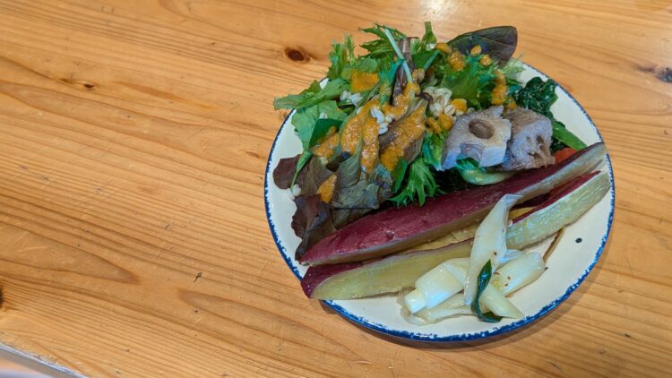 鴨川市やその近辺で採れた新鮮な野菜がずらっと並びます。この日は11〜12種類ほどの野菜が提供されていました。