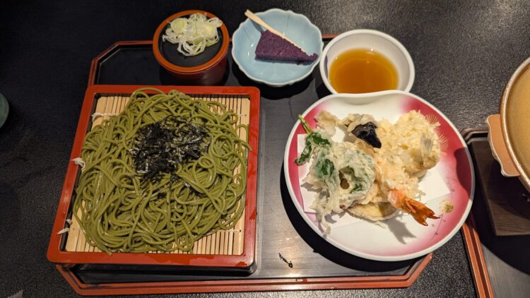個人的には茶そばもおすすめ。香ばしいお茶の香りが鼻を抜けるちゅるっちゅるのおそばです。